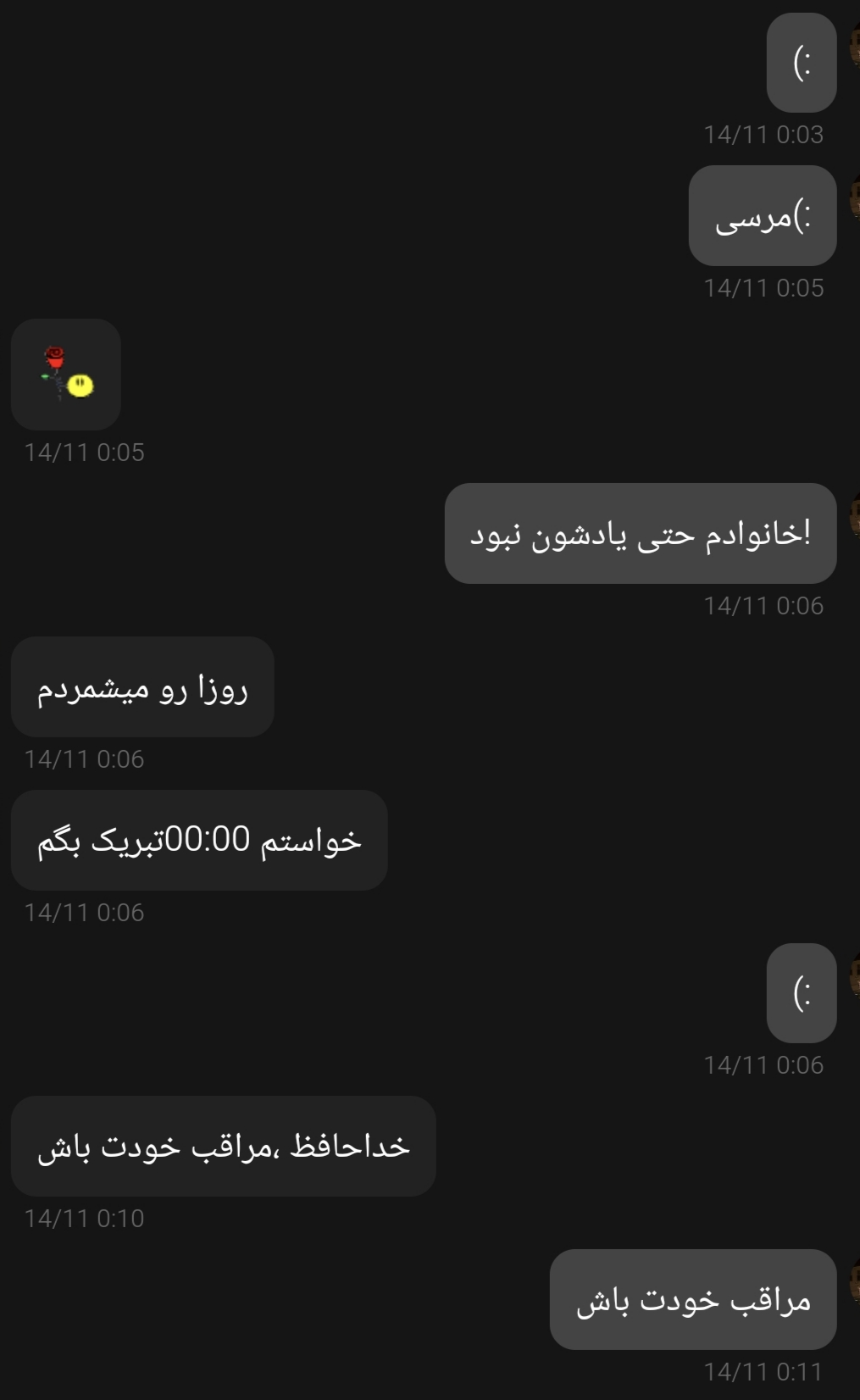 امیدوارم همیشه موفق باشی .میدونم همیشه در تلاشی به جاهای خوبی برسی ،بهت ایمان دارم ،امشب که پیام دادم هم از ته دل خوشحال شدم هم انگاری قلبم از درد ایستاد ...خوشحال شدم که تونستم ازت خداحافظی کنم ...ولی من دوست داشتم یه طور دیگه تبریک میگفتم ...ببخشید ..تو ببخشم ...ولی چه میشه کرد ما واسه هم ساخته نشدیم ..:)) امیدوارم صدمهای بهم نزنی ..شبت بخیر همه وجودم خوب بخوابی